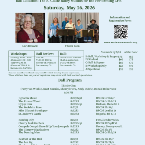 This year’s Workshop Teacher: Lori Howard, Ball Location: The E. Claire Raley Studios for the Performing Arts, Music by: Thistle Glen. Register before 5/10 to get the early bird special! https://www.rscds-sacramento.org/